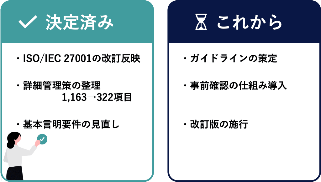 大幅な管理策の削減で、監査での負担の軽減が期待されるものの、「監査においては手引きを参考に監査を実施」と記載もあることから、現状と変わらない可能性もまだ否定できません。